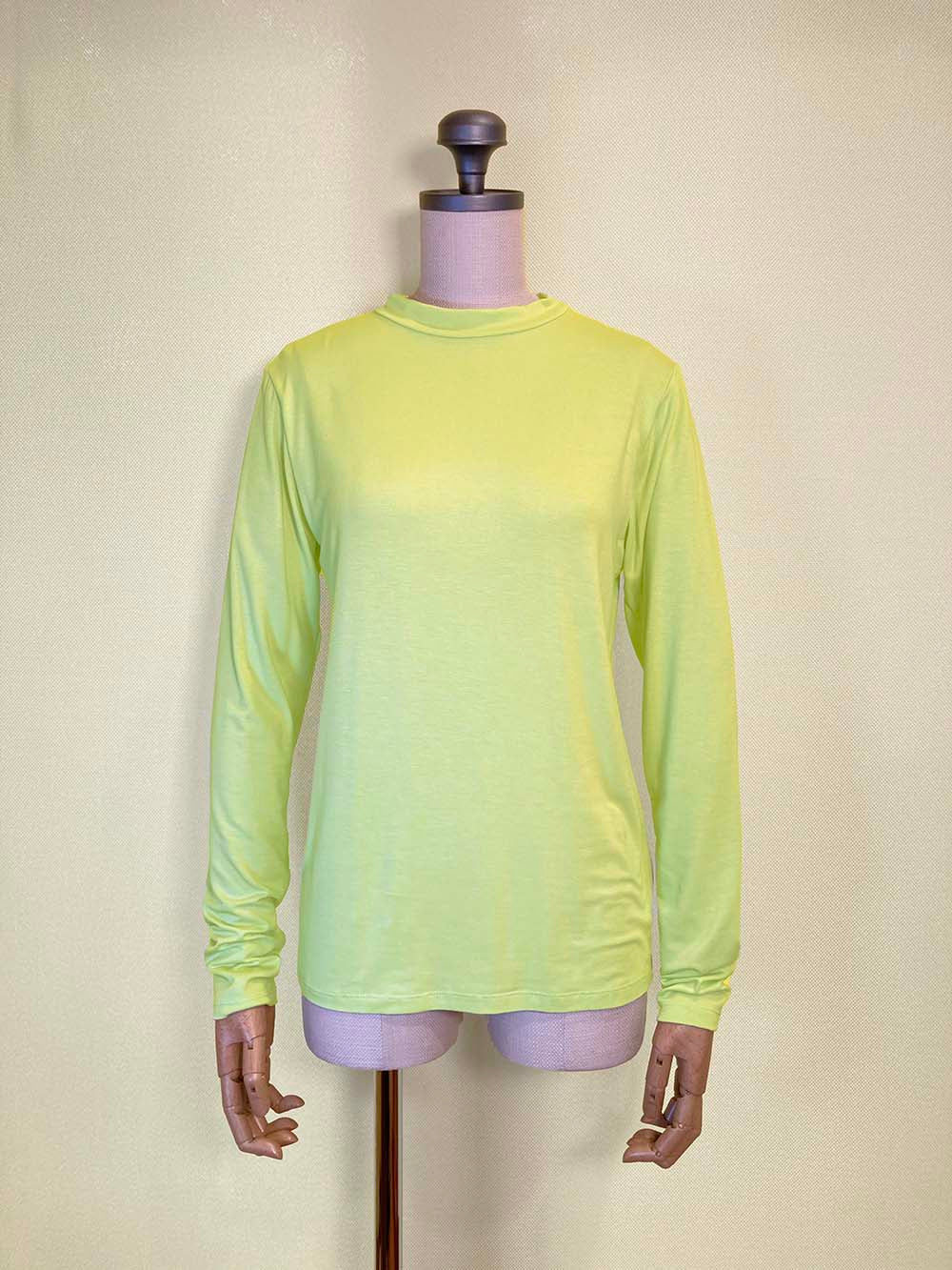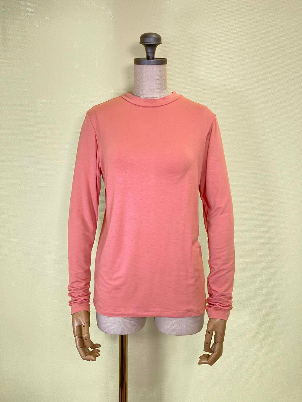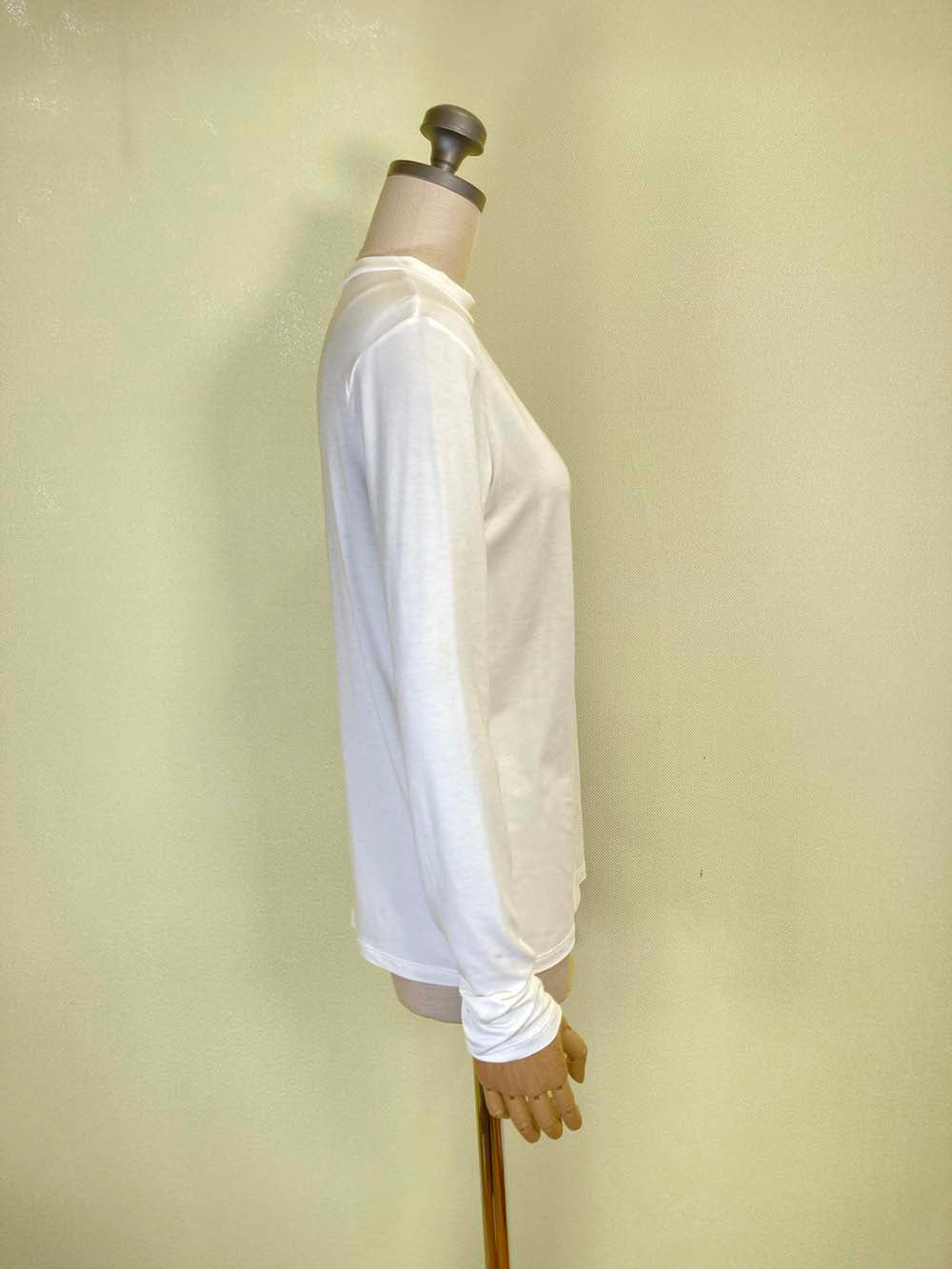 衿ぐりにやや高さのあるロングスリーブTシャツ。